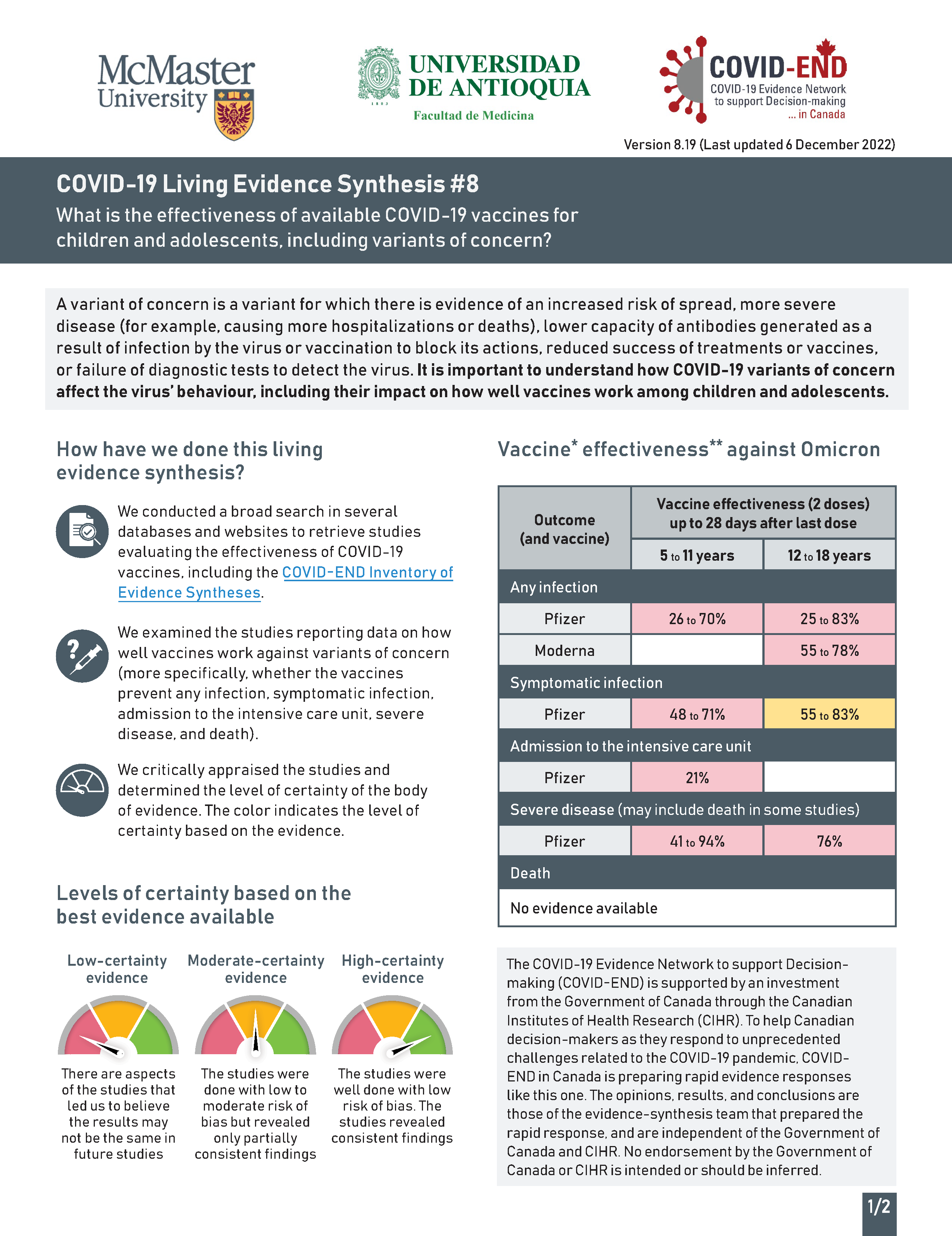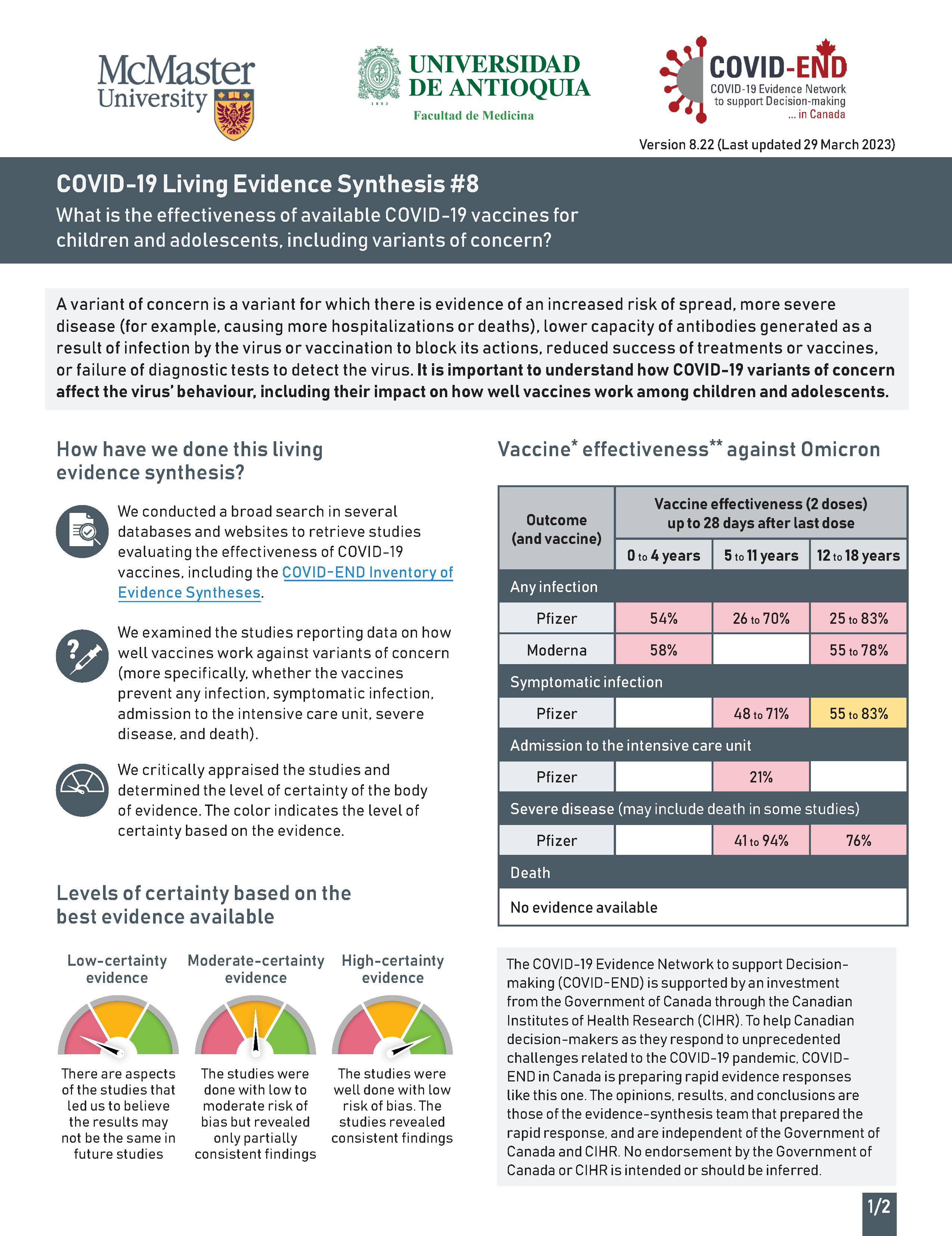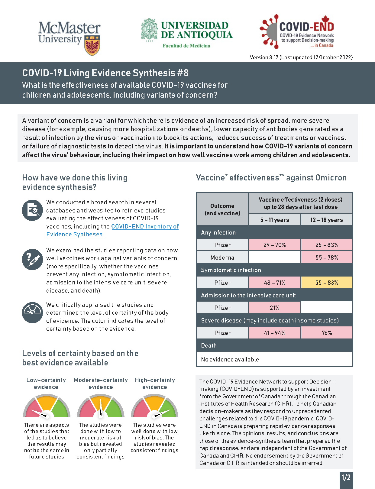 COVID-19 Living Evidence Synthesis 8 - What is the effectiveness of available COVID-19 vaccines for children and adolescents, including variants of concern