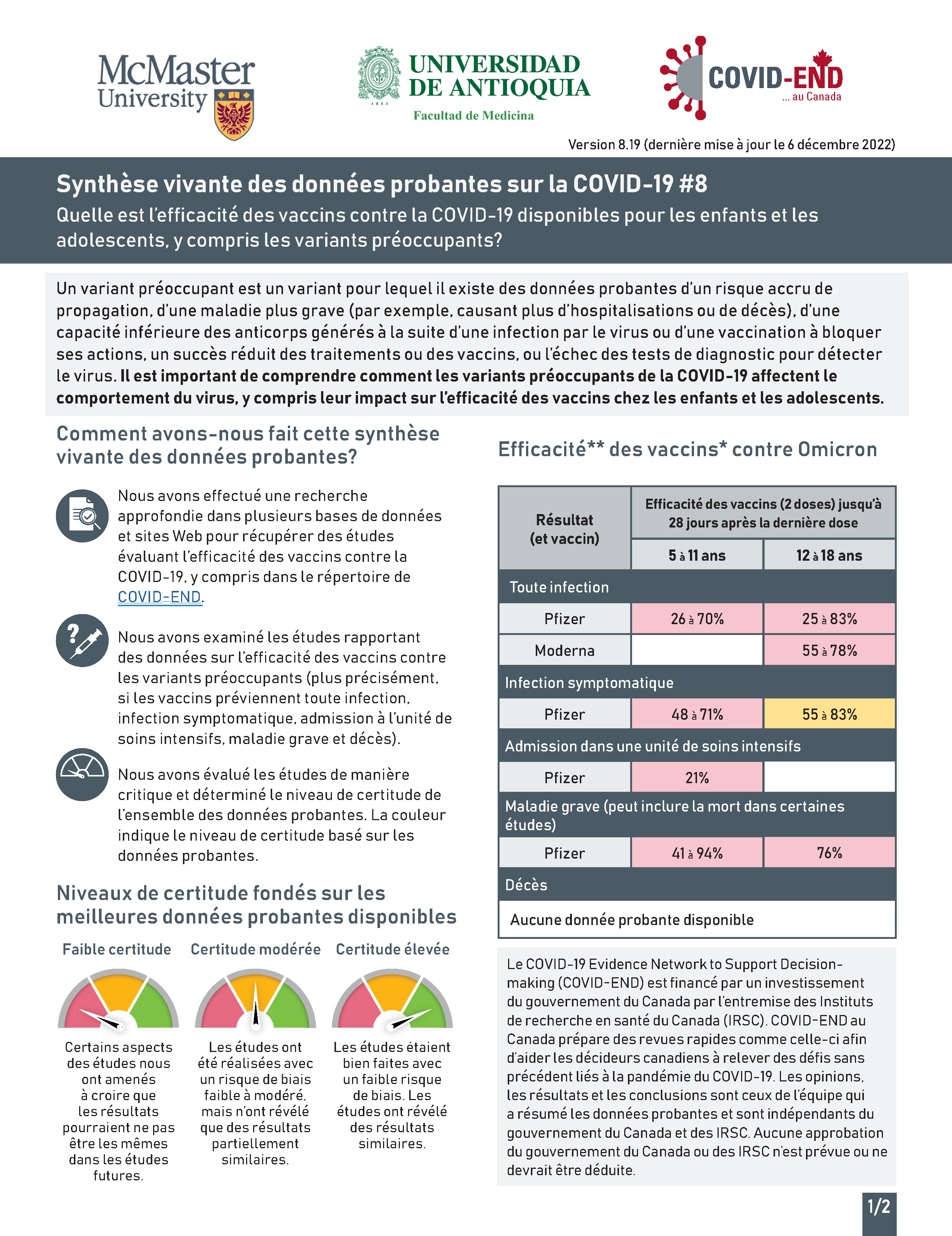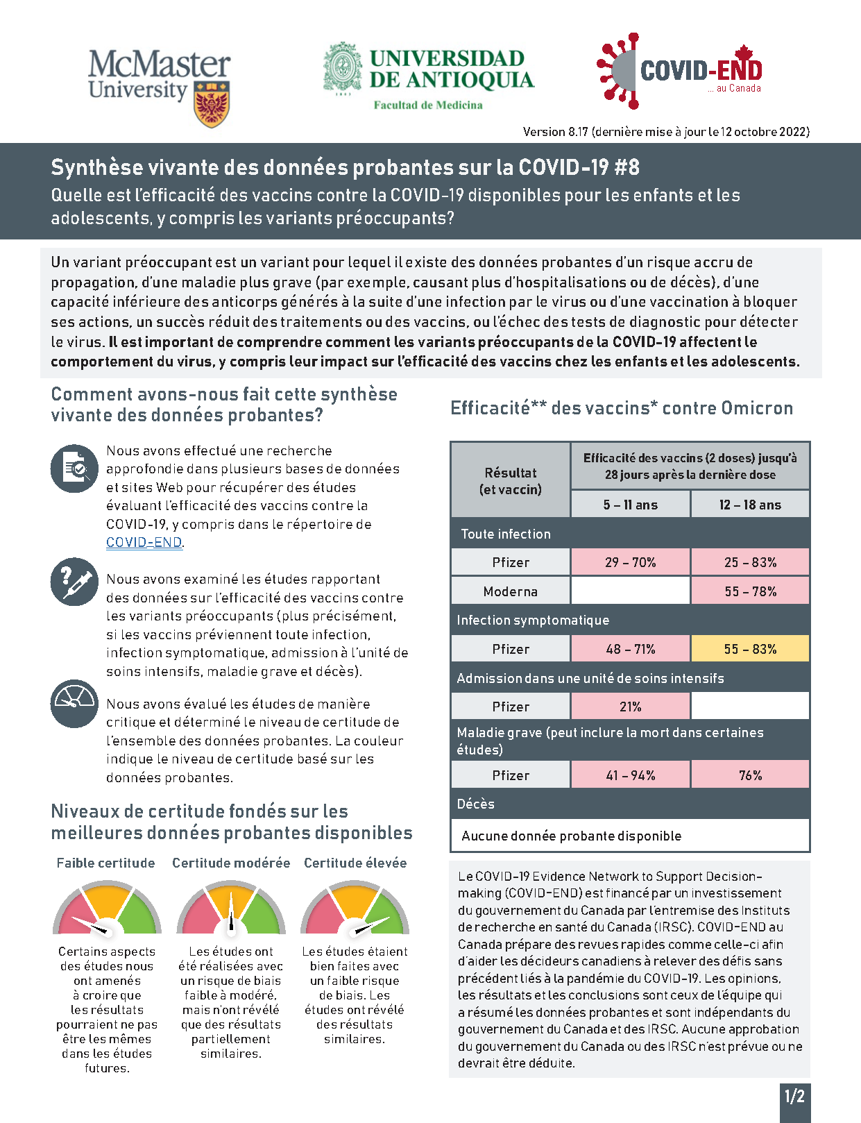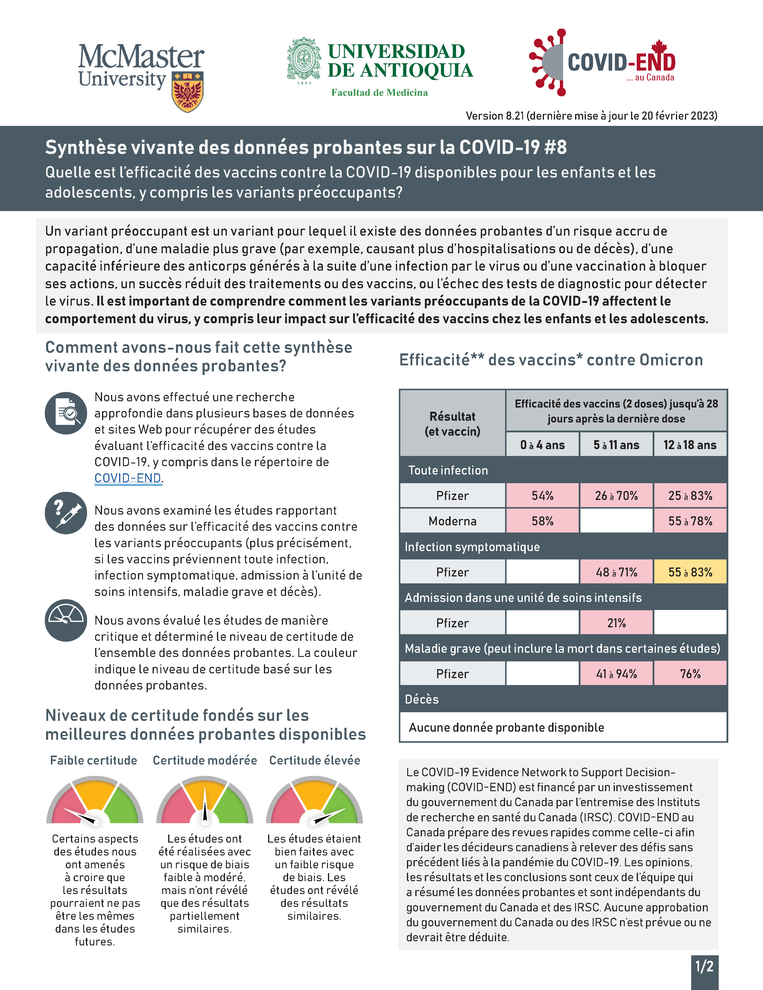 COVID-19 Living Evidence Synthesis 8 - What is the effectiveness of available COVID-19 vaccines for children and adolescents, including variants of concern