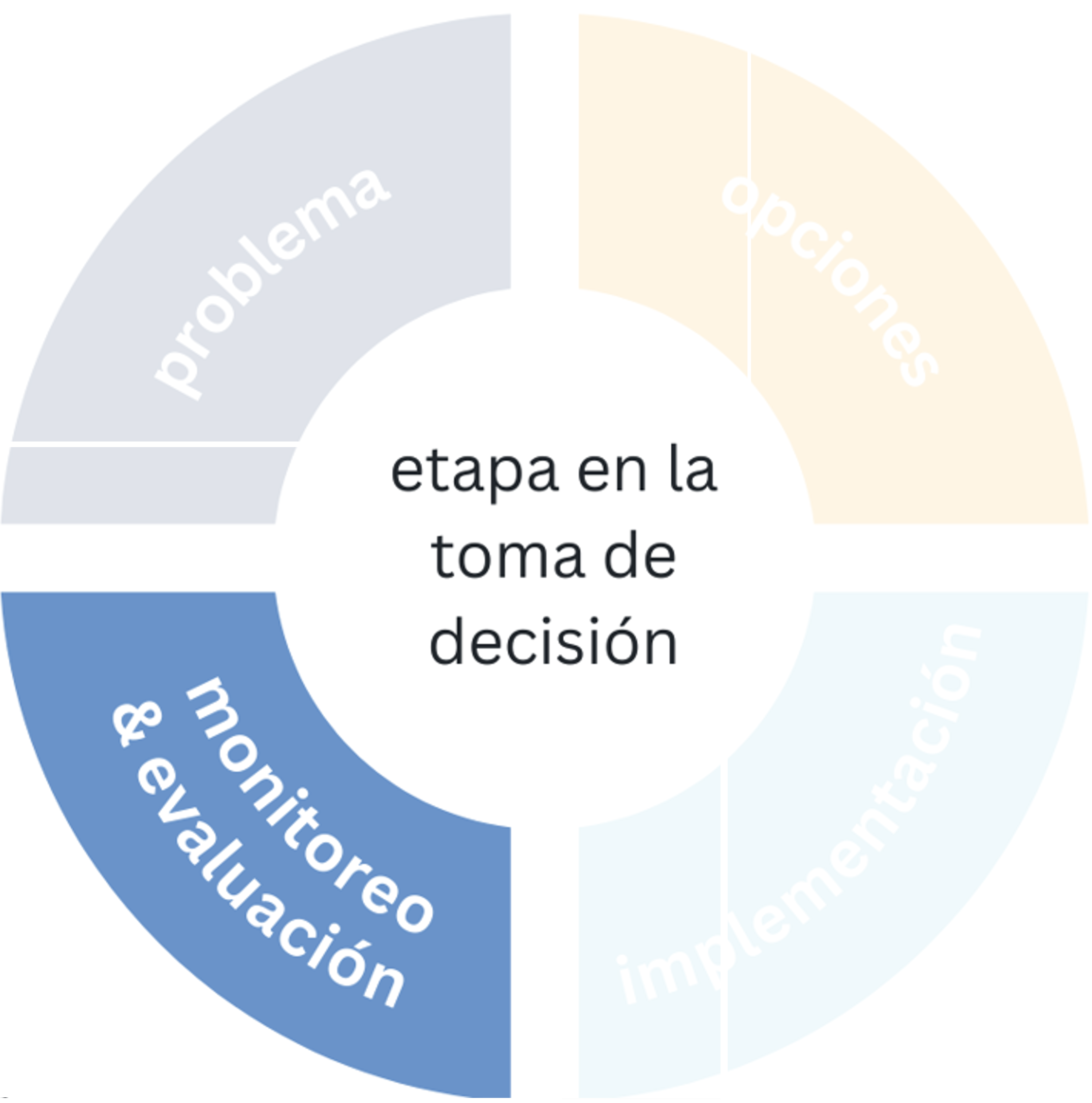 Este objetivo pretende monitorear y evaluar las poblaciones y las opciones o estrategias de implementación, lo que incluye su sostenibilidad en el tiempo. Aquí nos centramos en escenarios en los que ya se ha implementado una opción (a diferencia de las preguntas incluidas en la etapa 2).