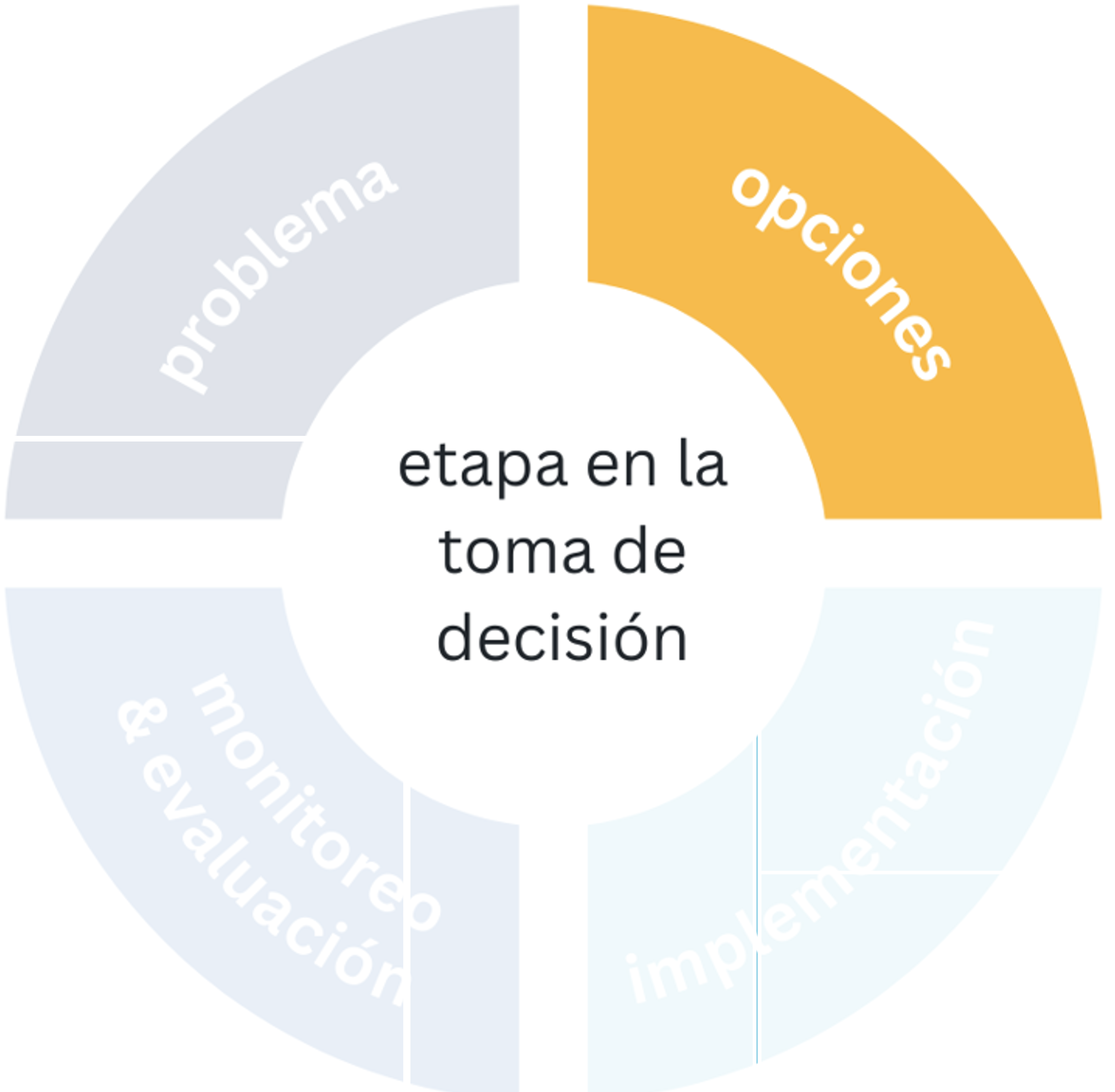 Este objetivo pretende producir conocimiento para seleccionar la mejor combinación de opciones para abordar el problema o sus causas, mediante la creación de paquetes o un ranking de opciones.
